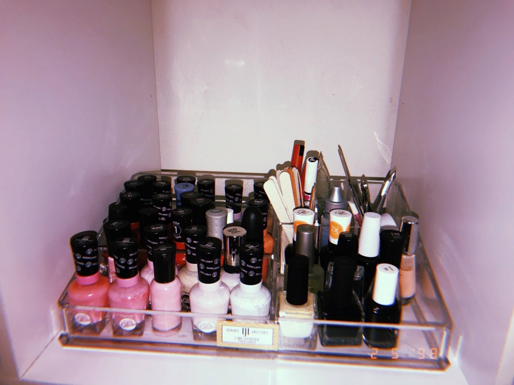 It took me a while to get the hang of doing my nails, but now I have a solid routine. I’ve also gotten a lot better at keeping the nail polish on my nails and not on my skin, thankfully.